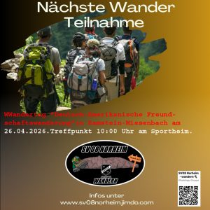 Die Wanderabteilung des SV 08 Norheim beteiligt sich am 26.04.2026 Wandertag „Deutsch-Amerikanische Freundschaftswanderung“ in Ramstein-Miesenbach.